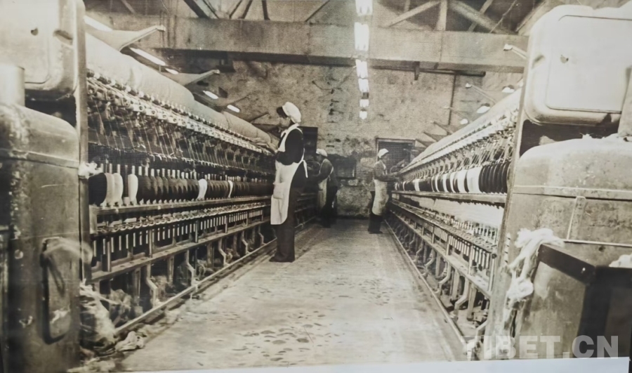 圖為昔日的西藏林芝毛紡廠生產(chǎn)車間