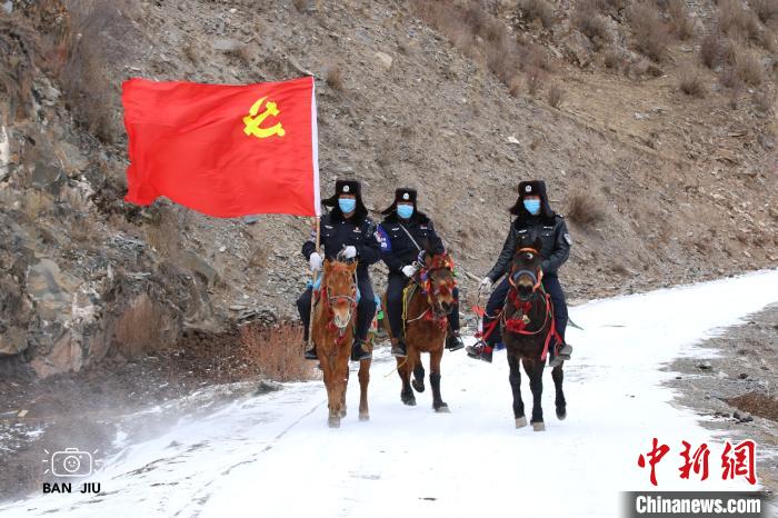 自疫情防疫阻擊戰(zhàn)打響以來,玉樹市公安局安沖鄉(xiāng)派出所創(chuàng)新工作方法,結(jié)合信息不暢、交通不便的實(shí)際,以馬為交通工具,發(fā)揮著馬背疫情巡邏隊(duì)、宣傳隊(duì)、防控隊(duì)的作用,穿梭在偏遠(yuǎn)牧區(qū),隊(duì)員們騎著馬手持便攜式喇叭,高舉鮮紅的黨旗,用簡(jiǎn)單易懂,接地氣的語言向轄區(qū)牧民群眾宣傳疫情防控知識(shí)。