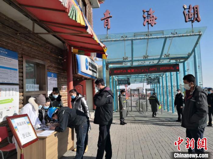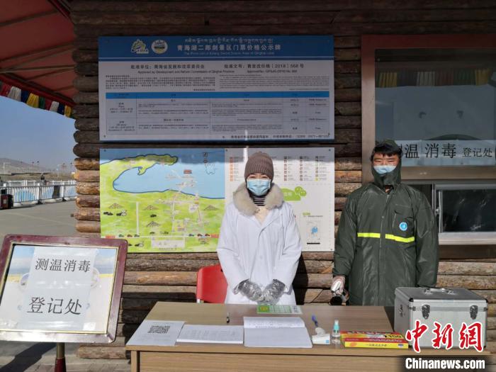 圖為青海湖景區(qū)恢復(fù)開放當(dāng)日,相關(guān)工作人員登記進(jìn)入景區(qū)。青海湖景區(qū)保護(hù)利用管理局供圖