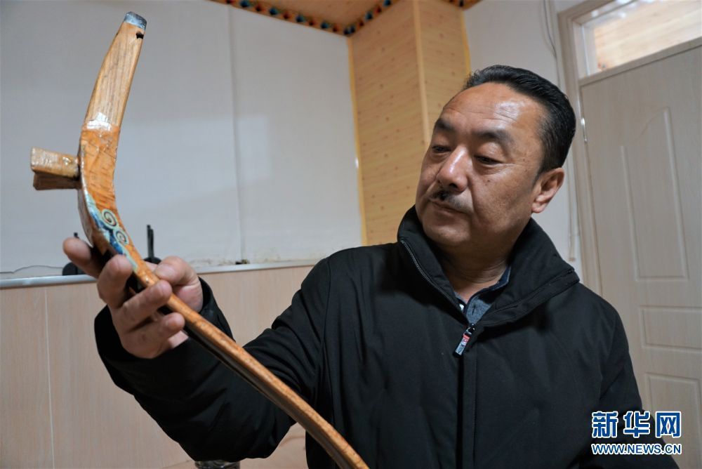 奧松多杰在檢查牛角弓的質(zhì)量(1月16日攝)。新華社記者 李占軼 攝