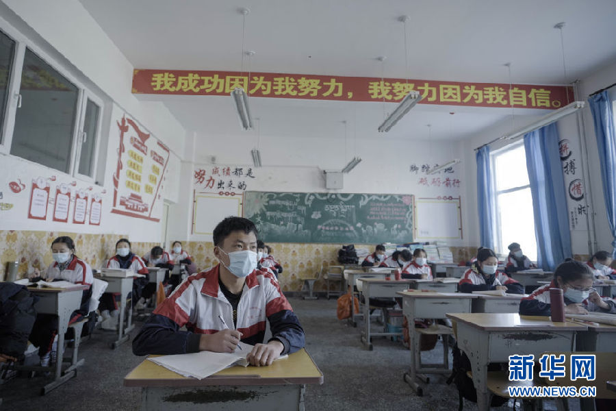 3月14日,海北州第一高級(jí)中學(xué)高三年級(jí)學(xué)生在教室內(nèi)上課。新華社 吳剛 攝