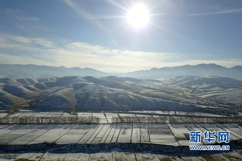 這是1月13日在甘肅省武威市天祝藏族自治縣境內(nèi)拍攝的祁連山下冬日景色(無人機照片)。新華社記者 范培珅 攝