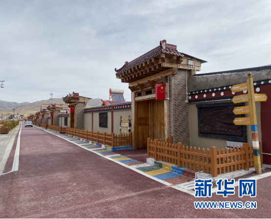 尕秀村內(nèi)整潔的路面以及藏式宅院。新華網(wǎng) 楊曉晶 攝