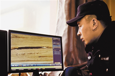 五道梁保護(hù)站民警德尕,正目不轉(zhuǎn)睛地關(guān)注著藏羚羊在通過青藏公路前的活動情況。