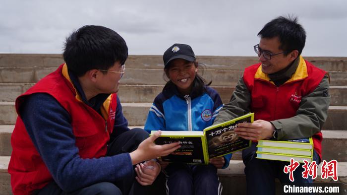 圖為黨員服務(wù)隊隊員與孩子一起閱讀書籍。昂尕 攝