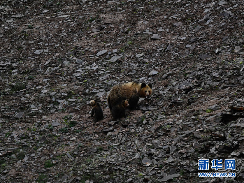 7月7日在可可西里卓乃湖區(qū)域拍攝的藏羚羊天敵——棕熊。新華社記者 張龍 攝