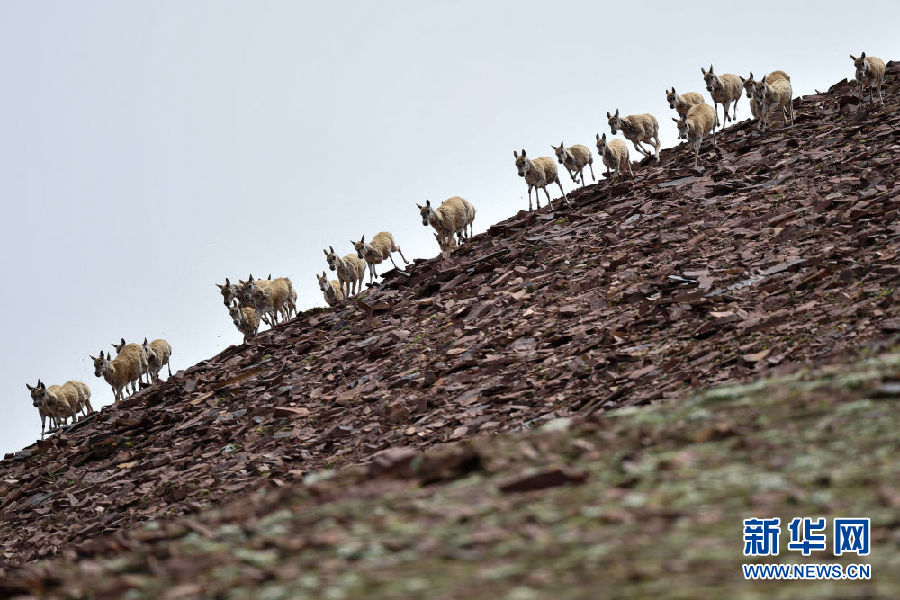 7月7日在可可西里卓乃湖區(qū)域拍攝的一群藏羚羊。新華社記者 薛玉斌 攝