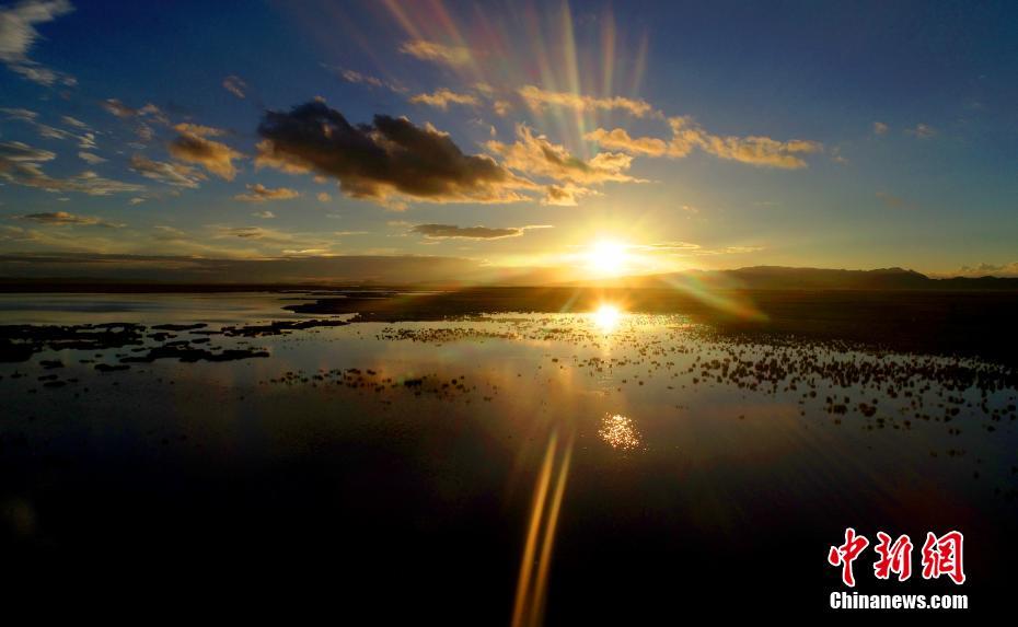 圖為7月21日拍攝的花湖落日。中新社記者 安源 攝