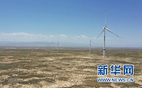 這是黃河水電130萬(wàn)千瓦風(fēng)力發(fā)電項(xiàng)目現(xiàn)場(chǎng)一角(6月24日攝,無(wú)人機(jī)照片)。新華社記者駱曉飛攝