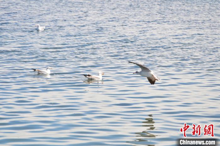 資料圖為青海湖湖面上的鳥類。魯丹陽 攝