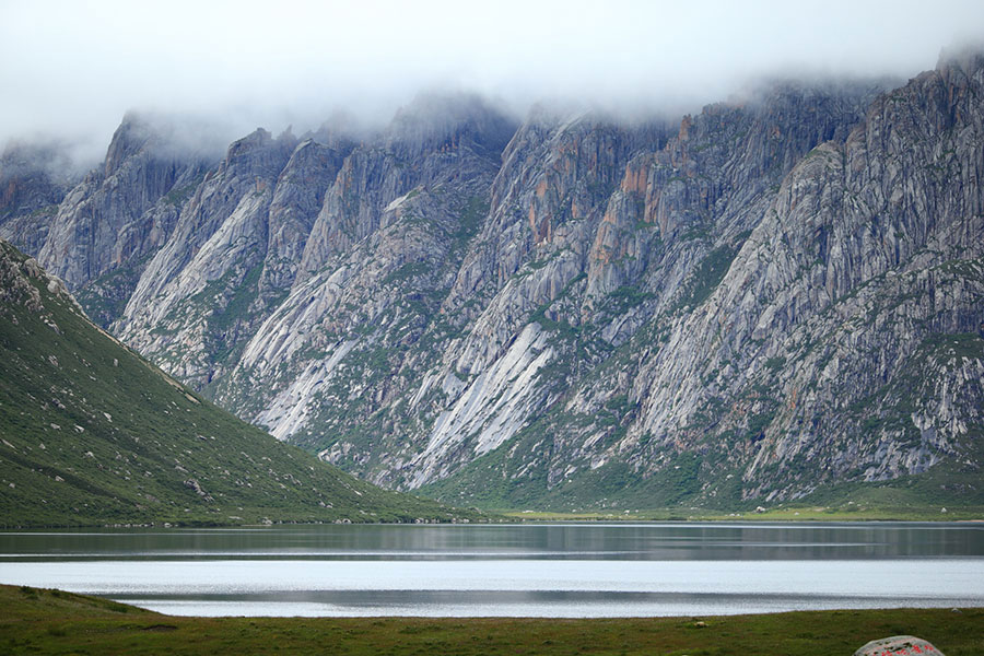 站在年保玉則的湖畔,湖面幽藍(lán)深邃像是一面鏡子,時(shí)間仿佛在這一刻都停止了,寧?kù)o和心靜。望向遠(yuǎn)處,山峰疊巒直插縹緲的白云中;看向身旁,五顏六色的小花鋪滿了湖岸,牦牛低頭飲著湖水,成群的裸鯉游走在湖邊,這是生命的動(dòng)靜。