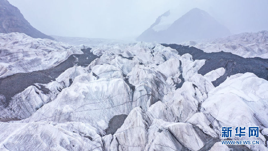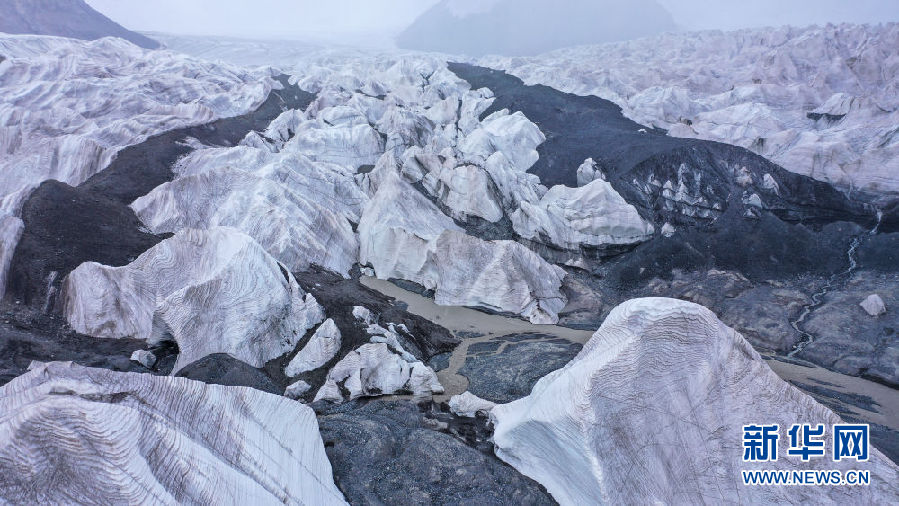 位于青海省玉樹藏族自治州的崗加曲巴冰川,坐落于長(zhǎng)江源園區(qū)的各拉丹冬雪山東坡,從空中俯瞰,層疊的冰塔顯得尤為壯觀。