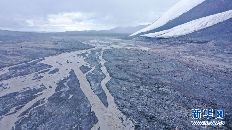 這是8月15日拍攝的崗加曲巴冰川融水形成的尕爾曲(無人機(jī)照片)。新華社記者 吳剛 攝