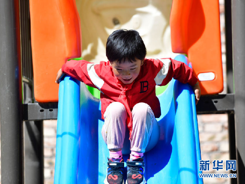 8月31日,在來塘村學(xué)校,一年級(jí)學(xué)生馬秀梅在課間玩耍。新華社記者 張龍 攝