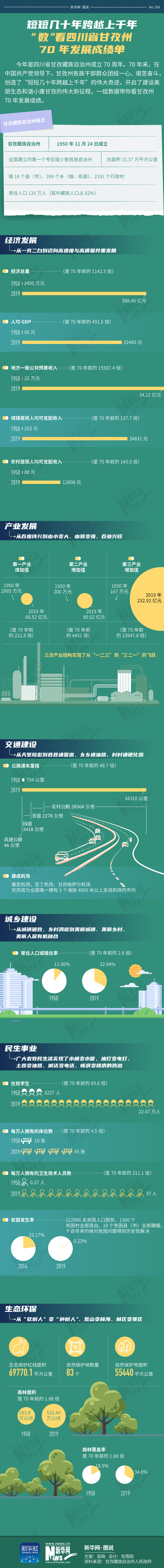 今年是四川省甘孜藏族自治州成立70周年。70年來,在中國共產(chǎn)黨領(lǐng)導下,甘孜州各族干部群眾團結(jié)一心、艱苦奮斗,創(chuàng)造了“短短幾十年跨越上千年”的偉大奇跡,開啟了建設(shè)美麗生態(tài)和諧小康甘孜的偉大新征程。一組數(shù)據(jù)帶你看甘孜州70年發(fā)展成績。