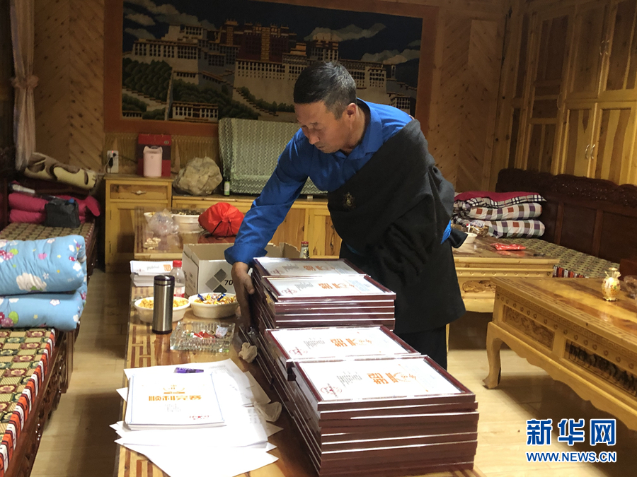 村民才保在家中整理運(yùn)動(dòng)員完賽證書(shū)。新華網(wǎng) 魚(yú)昊 攝