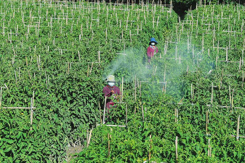 9月7日,丹巴縣甲居鎮(zhèn)小巴旺村村民正在田間管理30畝番茄。楊樹 攝