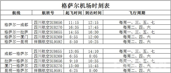 新航線開通后,甘孜格薩爾機場在飛的往返航線已有成都、拉薩、廈門、昆明,目前航線網(wǎng)絡正逐步完善加密。