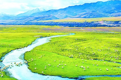 過昆侖山口,沿著青藏公路向西南行駛。廣袤的草場、蜿蜒的河流,映襯著遠(yuǎn)處的巍峨雪山——這是獨(dú)屬于高原的美景。