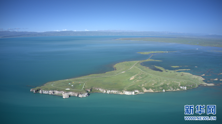 圖為青海湖鳥島(7月30日攝,無人機(jī)照片)。新華社 楊濤 攝