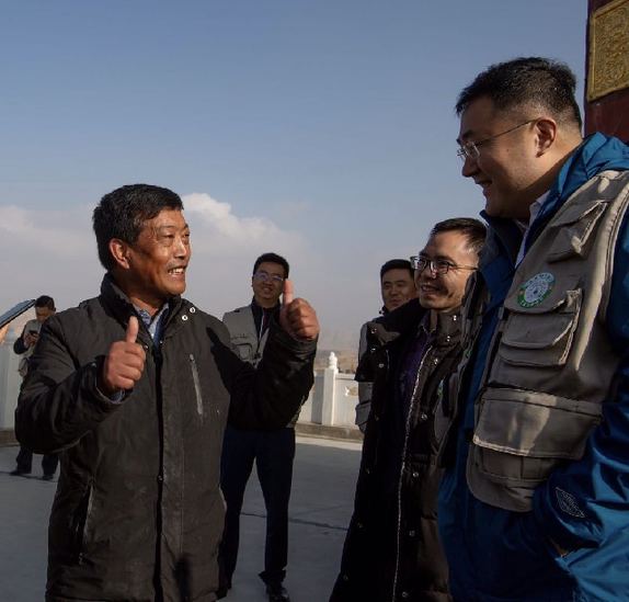 圖為青海省海南州共和縣恰卜恰鎮(zhèn)索爾加村的老支書(shū)扎西和中國(guó)太平洋產(chǎn)險(xiǎn)青海分公司總經(jīng)理李稚林等人愉快地交談。