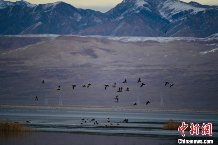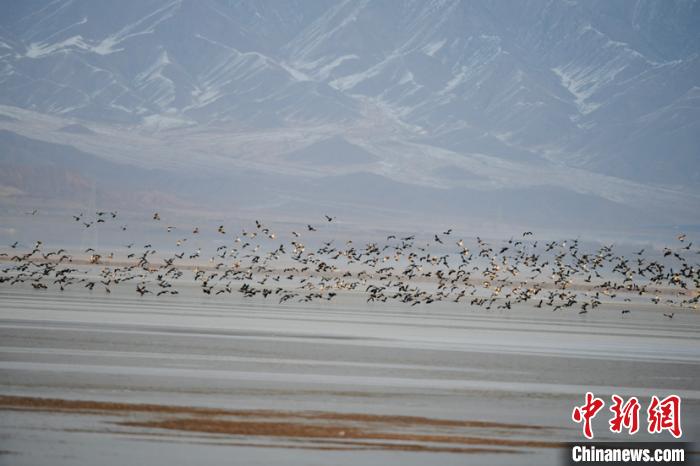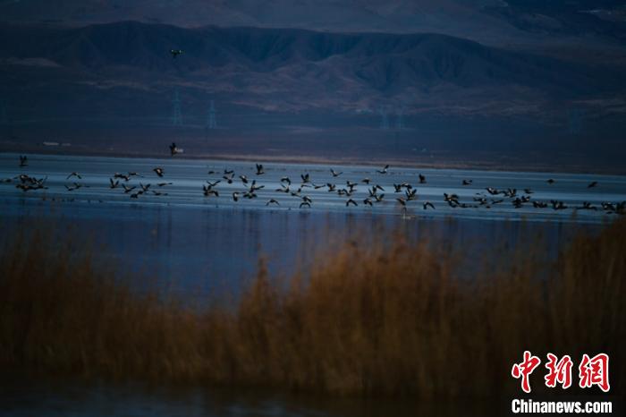 青海柴達(dá)木盆地都蘭湖國(guó)家濕地公園引數(shù)萬(wàn)只野生鳥(niǎo)類越冬