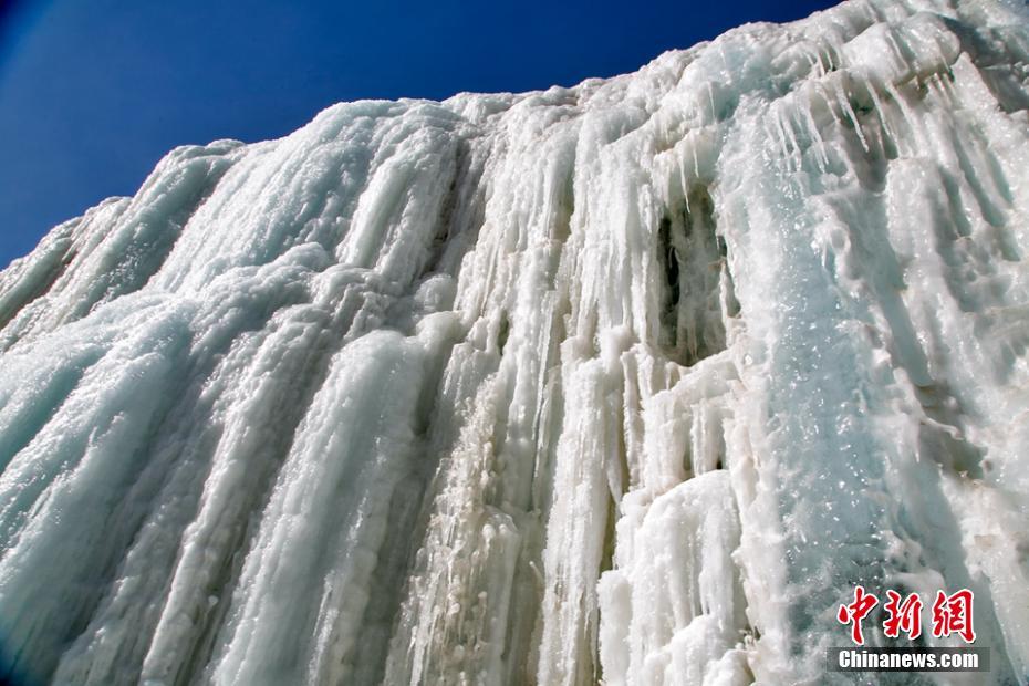 2021年1月23日,祁連山國家公園崗什卡雪峰山腳下的七彩冰瀑,由于溪水中含有多種礦物質(zhì),在冬日暖陽的照耀下,散發(fā)出五彩繽紛的綺麗風光,蔚為壯觀。中新社發(fā) 成 林 攝