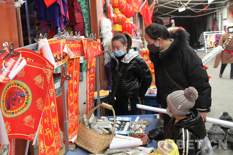 圖為選購(gòu)藏式春聯(lián) 葉強(qiáng)平 攝