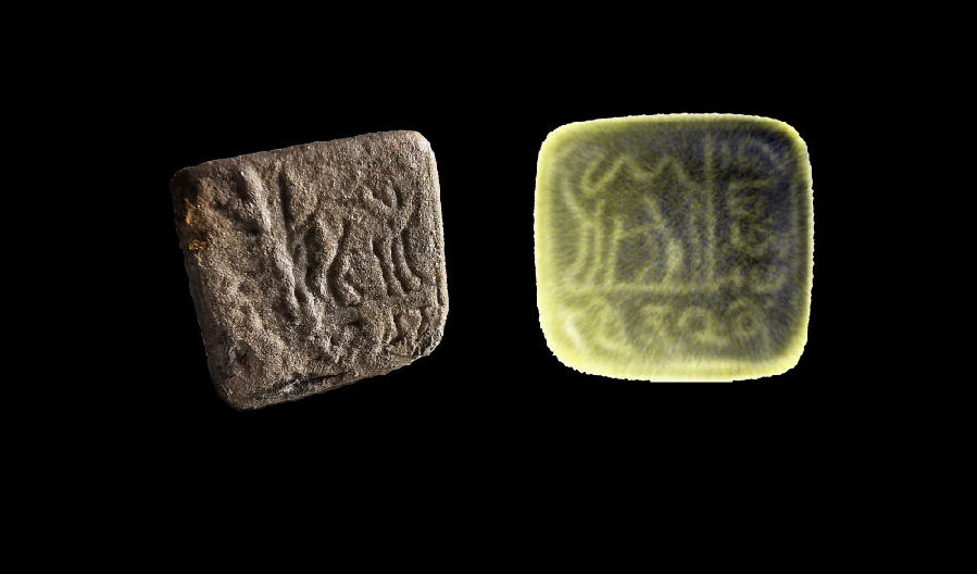 圖為2018血渭一號墓出土的銀質(zhì)印章。新華社發(fā)(熱水聯(lián)合考古隊供圖)