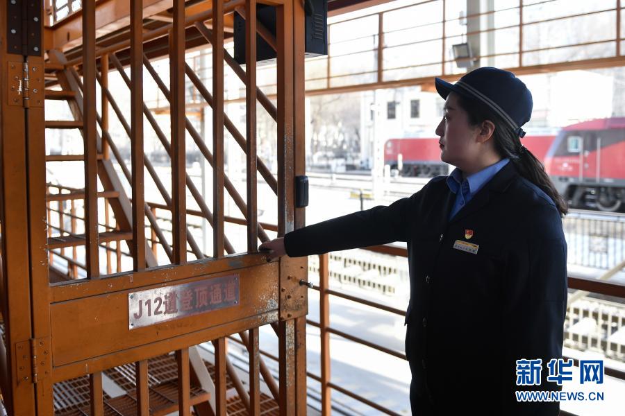 春運(yùn)期間,青藏鐵路公司西寧機(jī)務(wù)段整備車間每天檢修的機(jī)車增至40輛左右,為了防止登頂檢修人員被接觸網(wǎng)所攜帶的25千伏高壓電傷害,由王麗、賀霞、馬正蘭、李娟四個人組成的“娘子軍”隔離開關(guān)班組擔(dān)負(fù)起保障登頂作業(yè)人員與設(shè)備使用安全的責(zé)任。春運(yùn)期間,她們守在機(jī)車旁,檢查設(shè)備安全性能、叮囑登頂工作人員,一站就是一整天,用耐心與細(xì)心守護(hù)著春運(yùn)機(jī)車安全?! ?/p>