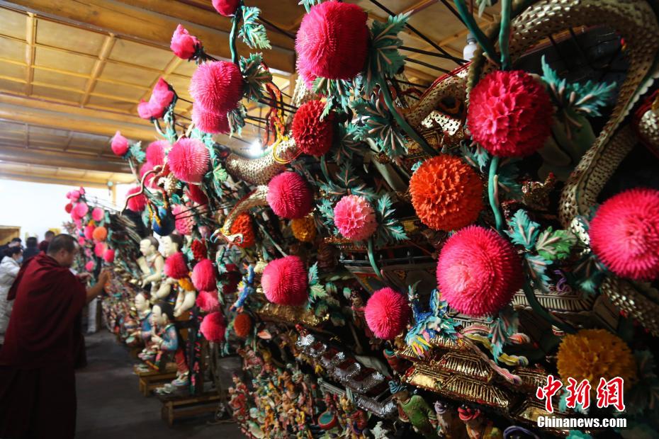 圖為正月十四等待陳展的酥油花局部。張?zhí)砀?攝