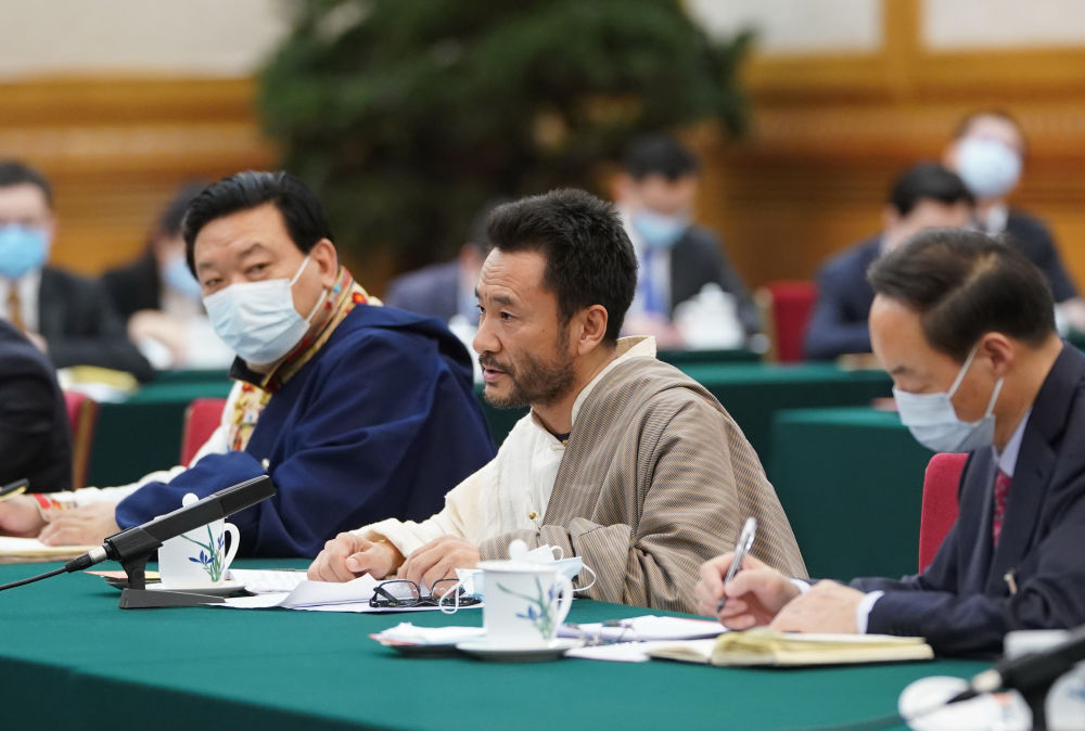 3月7日,在參加十三屆全國(guó)人大四次會(huì)議青海代表團(tuán)審議時(shí),扎西多杰就玉樹(shù)災(zāi)后重建新變化發(fā)言。新華社記者李學(xué)仁攝