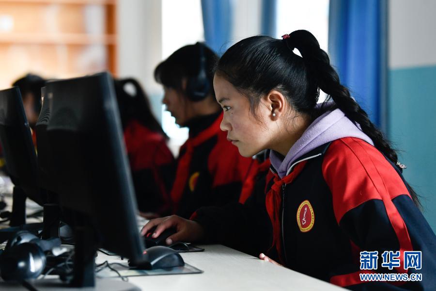 3月17日,在果洛藏族自治州甘德縣崗龍鄉(xiāng)寄宿制中心小學(xué),學(xué)生在上計算機課。新華社記者 張龍 攝