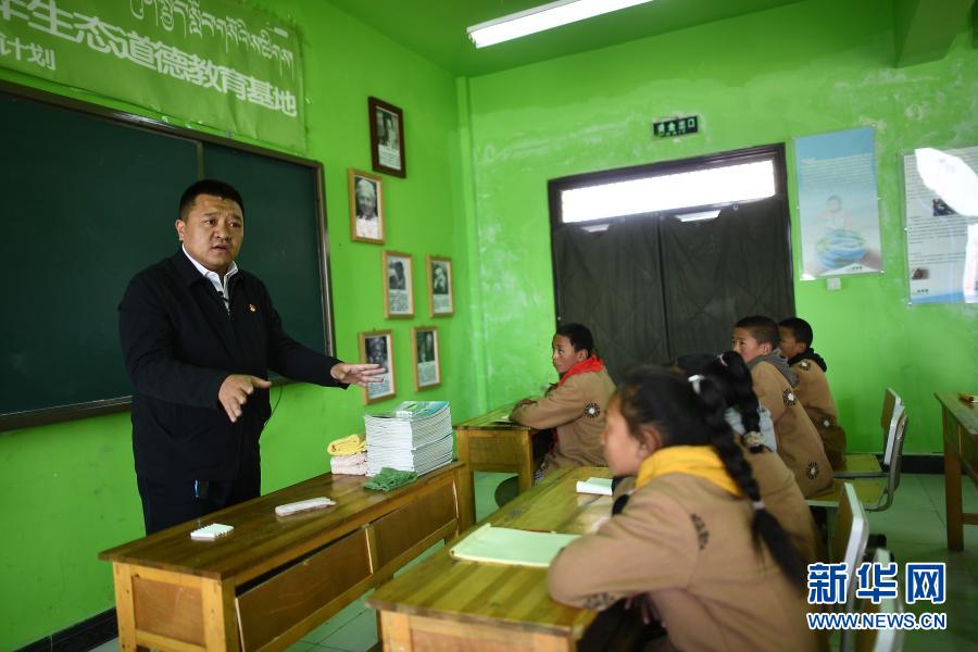 3月23日,青海省玉樹藏族自治州治多縣吉尕小學舉行一場特殊的生態(tài)課,邀請“環(huán)保衛(wèi)士”杰?!に髂线_杰之子索南旦正為學生授課。自2015年起,治多縣以杰?!に髂线_杰精神為主線,通過主題班會、生態(tài)課堂、櫥窗宣傳等方式在全縣校園內(nèi)開展生態(tài)教育活動。2018年,治多縣在吉尕小學設(shè)立三江源國家公園園區(qū)青少年生態(tài)道德教育基地,培養(yǎng)學生樹立“環(huán)保從我做起”的意識。截至目前,生態(tài)課堂已覆蓋治多縣10所中小學近5000名學生。