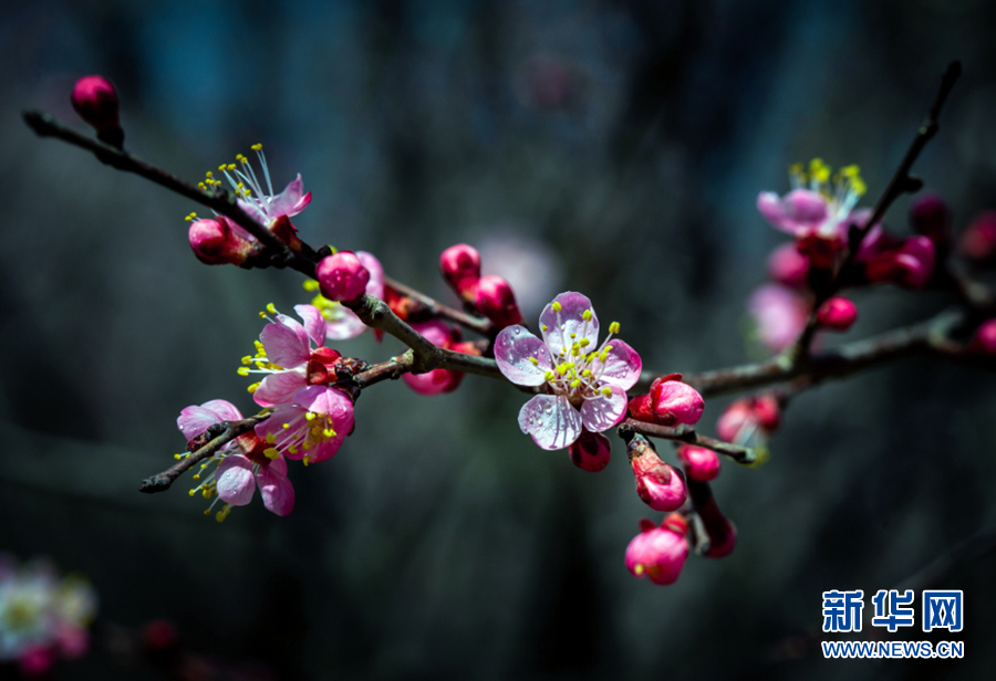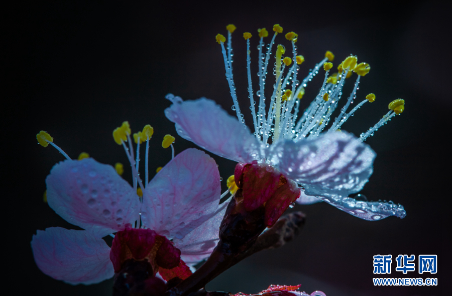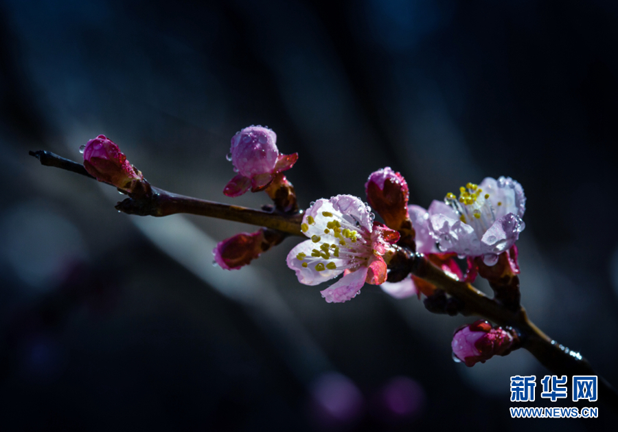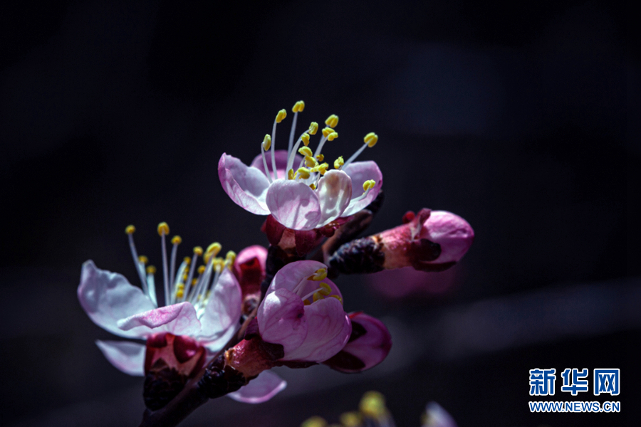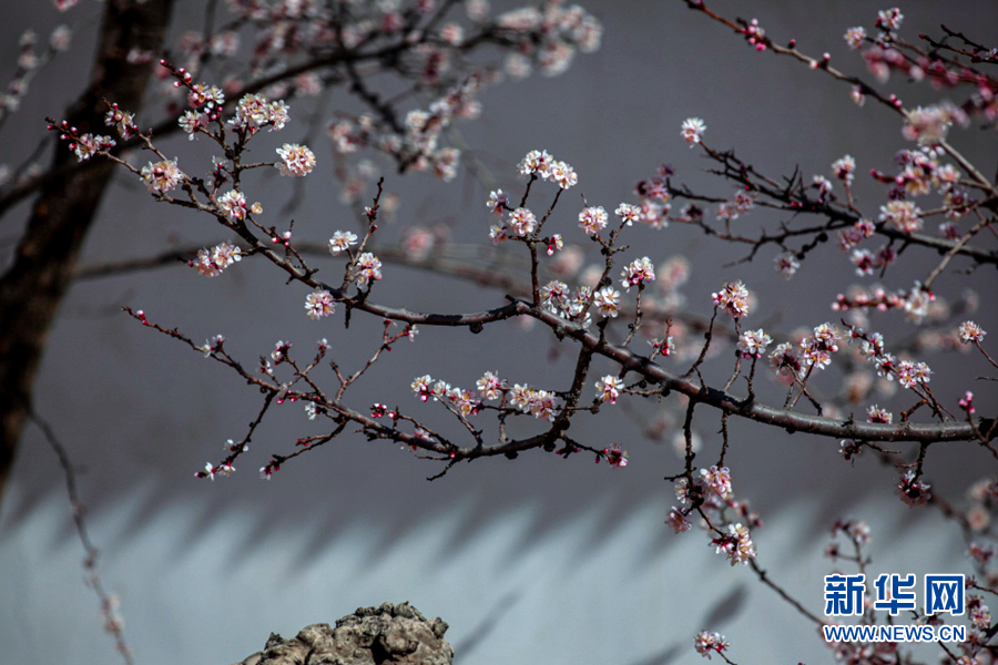 陽光照耀下,杏花張開了笑臉,花蕊悄悄地探出了頭。新華網(wǎng) 陳錫明 攝