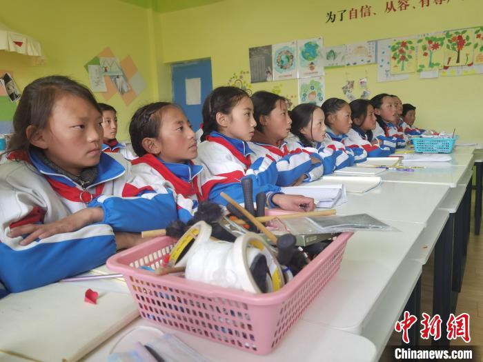 圖為治多縣第一完全小學學生認真聽講。潘雨潔 攝