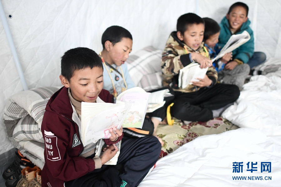 “帳篷里挺暖和,老師們都陪著我們,現(xiàn)在很安心,不覺得害怕?!本拍昙壱话鄬W(xué)生扎西東周說。