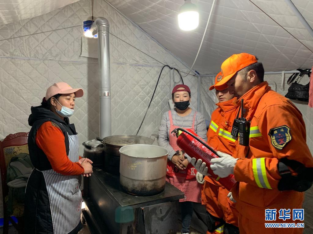 25日,青?,敹唷?·22”7.4級(jí)地震災(zāi)后第四天,瑪多縣城飄起小雪。青海省玉樹藏族自治州消防救援支隊(duì)消防員群英尕丁,又來到瑪多縣民族寄宿制中學(xué)的安置區(qū)日常巡查。