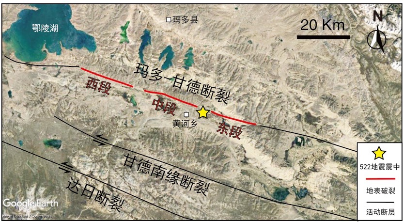經(jīng)初步調(diào)查結(jié)果顯示,本次地震為一次典型的左旋走滑型地震事件,局部伴隨正斷分量,發(fā)震斷層為巴顏喀拉地塊北側(cè)東昆侖斷裂帶東段的一條分支瑪多-甘德斷裂。