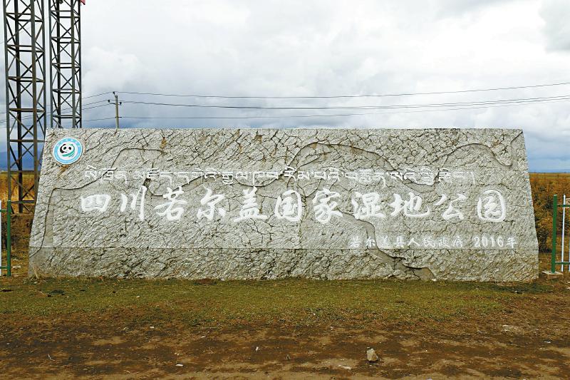 四川若爾蓋國家濕地公園石碑。四川日報全媒體記者 徐登林 攝