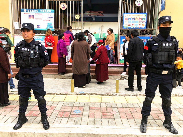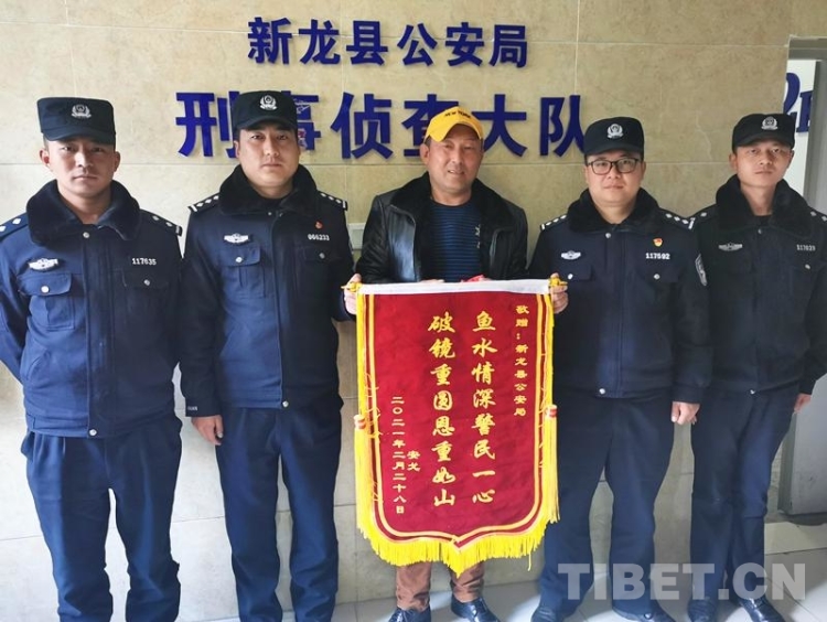 中國西藏網訊 6月4日下午,四川省甘孜州新龍縣幼兒園三名教師將一面寫有“無私奉獻、辛勤守護”的錦旗,送到縣公安局特巡警大隊,感謝民警們設立“護學崗”,守護學校師生交通安全。