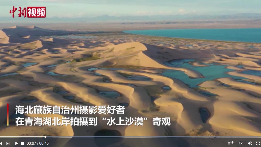 7月盛夏,是“高原藍寶石”青海湖最美的季節(jié)。近日,青海省海北藏族自治州攝影愛好者在青海湖北岸拍攝到“水上沙漠”奇觀。由于近年來青海湖水位不斷上漲,淹沒了部分地勢較低的沙丘形成此景。