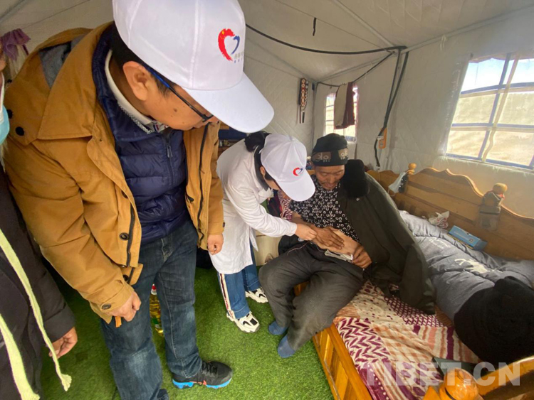 兩天來,瑪多余震不斷、陰晴不定,醫(yī)生們克服各種不適,兵分幾路,分別在縣醫(yī)院、噶旦村瑪查理安置點(diǎn)、扎陵湖鄉(xiāng)安置點(diǎn)、黃河鄉(xiāng)唐格瑪村醫(yī)療點(diǎn)進(jìn)行義診和帶教查房。除此之外,由6名專家組成的醫(yī)療小組還走進(jìn)7戶當(dāng)?shù)鼐用窦抑?,帶著藥品和食用油、棉被等生活用品,給病患之家送去溫暖。