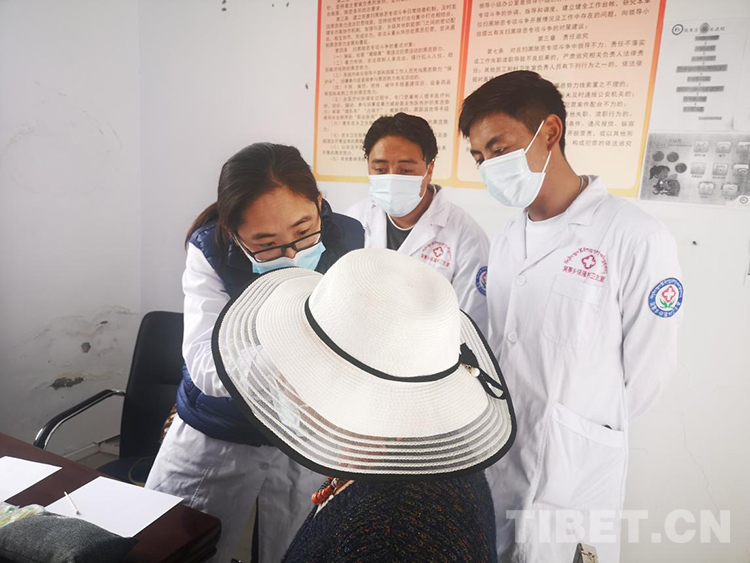 “耳朵哪里不舒服?”北京市太陽(yáng)宮社區(qū)衛(wèi)生服務(wù)中心中醫(yī)科朱琳琳主任為牧民群眾細(xì)心地檢查耳朵,窩賽鄉(xiāng)衛(wèi)生院的醫(yī)生一邊幫他們翻譯,一邊在旁邊學(xué)習(xí)診療過(guò)程。