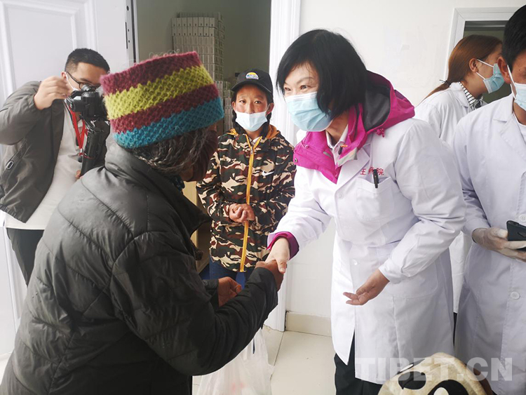 圖為拄著拐杖前來(lái)問(wèn)診的窩賽鄉(xiāng)牧民
