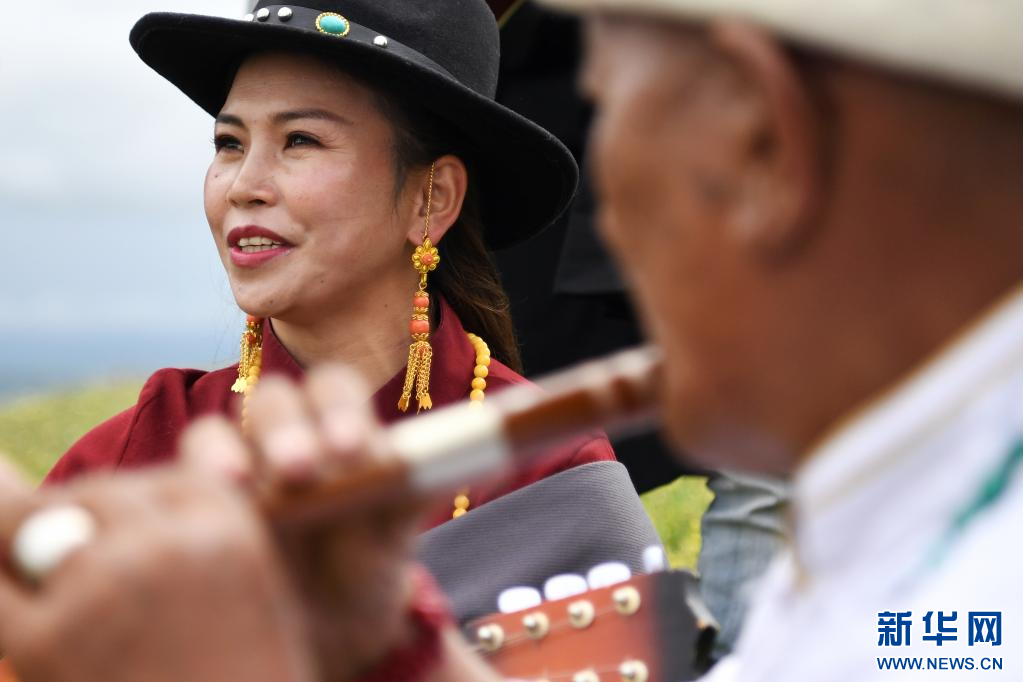 夏日的草原“流行樂(lè)” 格薩爾彈唱藝人在瑪曲草原上彈唱格薩爾(7月14日攝)。新華社記者 杜哲宇 攝