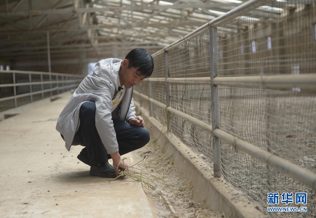 7月8日,在青海省海南藏族自治州共和縣,牧民向占魁在清理羊圈中的雜草。新華社 張曼怡 攝