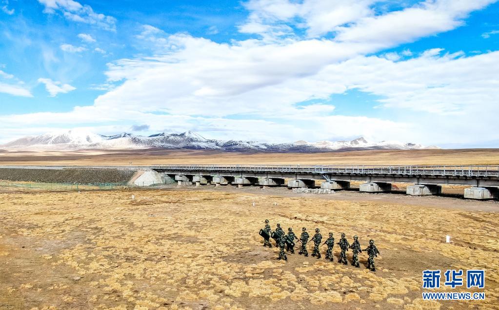 武警青??傟?duì)執(zhí)勤支隊(duì)執(zhí)勤七中隊(duì)官兵在青藏鐵路沿線巡邏(5月21日攝)。新華社 楊浩 攝