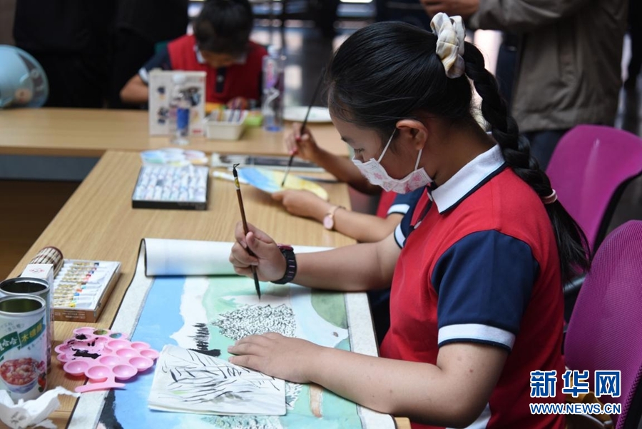 萌芽祁連山板塊現(xiàn)場,小朋友正在作畫。新華網(wǎng) 齊雨萌 攝