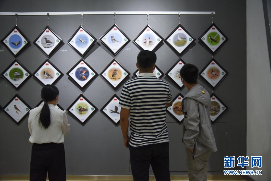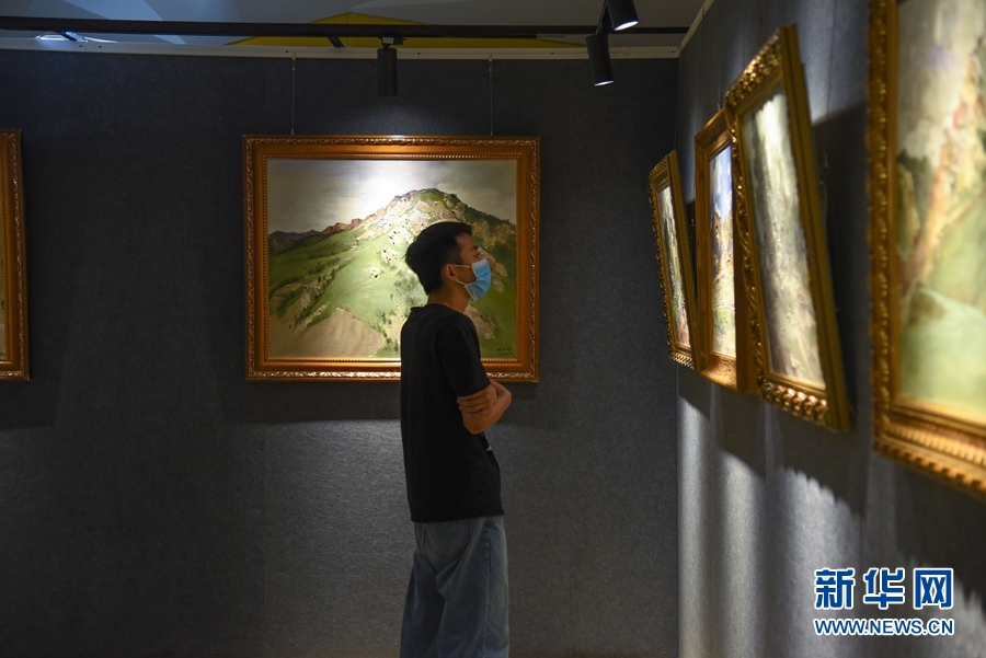 8月5日,觀眾在首屆祁連山國家公園青海片區(qū)生態(tài)藝術(shù)展欣賞展出的作品。新華網(wǎng) 齊雨萌 攝